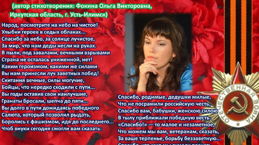 Фокина Ольга Викторовна (г. Усть-Илимск)2 года назадПодписатьсяВзгляд с небес как совесть сердца (стихи Ольги Фокиной, Усть-Илимск)ВЫИГРЫВАЙТЕ КНИГИ ОЛЬГИ ФОКИНОЙ БЕСПЛАТНО: https://proza.ru/2017/09/17/447 СТИХИ: https://stihi.ru/2018/07/08/3790 БИОГРАФИЯ: http://www.proza.ru/2019/10/08/1473