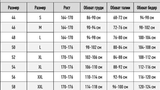 Таблица стандартных размеров с 42 по 68 (российский тип) - сохраните обязательно!