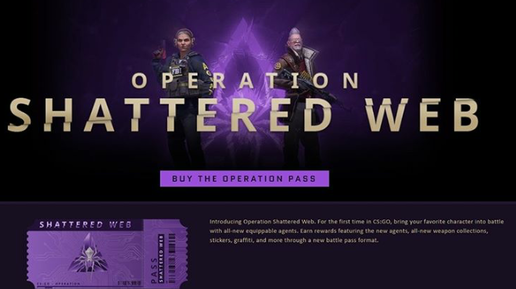 Стоимость: $15 (950 рублей или 13,25 евро) - Добавлены скины на персонажей (СТ и Т стороны). Для их получения вам нужно купить операцию и проходить различные миссии. - Добавлена экран с персонажами и их позированием в конце игры, где будет написана лучшая статистика в той или иной категории всех 5 игроков - Добавлены 4 новых коллекции скинов: Norse, St. Marc, Canals, и Shattered Web - Добавлены 4 новых ножа в новом Shattered Web кейсе - Добавлены новые стикеры в виде наград за прохождение миссий...