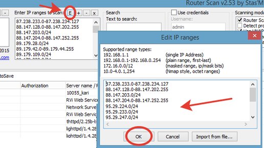Что это такое? Router Scan - программа для взлома пароля от WIFI сети. Но на этот раз взлом идет не снаружи, и изнутри, из интернета. В программу надо вписать IP-адрес или наборы IP-адресов и она по этому IP-адресу попытается войти в меню настроек роутера. А так как стандартные пароли типа admin:admin никто не меняет, то программа находит довольно много точек доступа. В итоге она показывает модель, пароль от wi-fi, логин и пароль от настроек роутера и много другой информации. А с помощью других программ можно найти точное местоположение данного роутера...