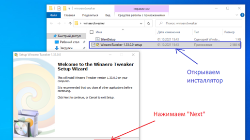 В предыдущей статье речь шла о том, как распаковать программу Winaero Tweaker. В этой статье мы ее будем ставить на ПК. Поскольку процесс установки и распаковки немного различается, то рассмотрим оба варианта. По началу все выглядит как при распаковке. Скачали дистрибутив программы с официального сайта или с сайта softportal, распаковали архив архиватором 7-Zip. Открыли инсталлятор программы и нажали "Next" После нажатия "Next" (Далее). мы выбираем установочную версию программы и нажимаем "Next"...
