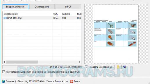 WinScan2PDF скачать бесплатно WinScan2PDF – небольшая утилита для прямого сканирования документации и её сохранения в PDF. Приложение сканирует и сохраняет документы на ПК в вышеназванном формате, создает мультистраничный материал, настраивает качество и четкость процесса, а также размер выходной работы. Функционирует как pdf-принтер и работает с разными сканерами. ВинСкан2ПДФ автоматически определяет и оцифровывает документ, сохраняет сканы в JPEG и PNG...