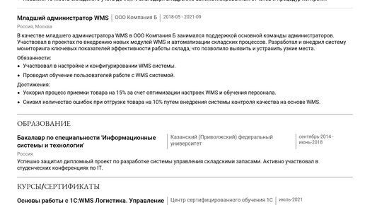 Пример резюме администратора WMS 2025 - Как составить