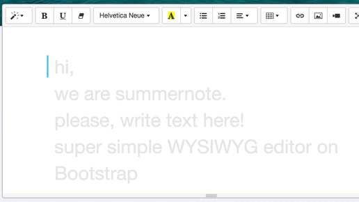 Называется сие чудо summernote. Реально простой, удобный, есть все что нужно. Нужно сделать страницу чтобы девочки сами могли создавать контент, таблички там, заголовки, картинки добавляли и т.п. Работал с CKEditor до этого и еще с одним TinyMCE кажется. CKEditor использовал у себя на сайте, но там мне надо было дополнительно еще и код вставлять, подключил для этого Highlight библиотеку, но побороть я его не мог, оставил до лучший времен, а тут надо было подыскать что нибудь, чтобы не опытные девочки...