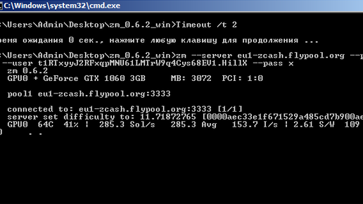 Майнинг криптовалюты Zcash (ZEC) настройка майнера.
