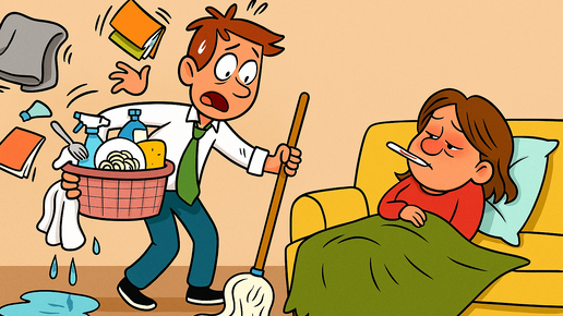 Всё началось с того, что я заболела. Обычная простуда — температура, кашель, желание лежать и смотреть в потолок, размышляя о бренности бытия. Ничего особенного, переживу. Но муж мой, Дима, человек действия и благородных порывов, решил, что настал его звёздный час. — Лежи, не вставай, — сказал он голосом спасателя МЧС. — Я всё сделаю сам. Надо было насторожиться уже тогда. Когда мужчина говорит «я всё сделаю сам» с таким энтузиазмом, это либо предложение руки и сердца, либо начало апокалипсиса. Третьего не дано...