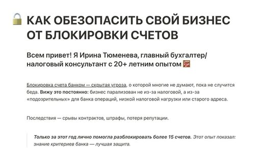 Каждый второй предприниматель теряет деньги из-за этой ошибки. Проверьте, не делаете ли так же вы? Знакомо: работаешь, деньги капают на карту, всё вроде хорошо. А потом раз — и приходит смс от банка, что операция заблокирована. Сердце останавливается. Доступ к деньгам закрыт, непонятно, что делать и почему это произошло. Ко мне в последнее время всё чаще обращаются именно с этой проблемой: «Помогите, заблокировали счет!» И знаете, что я заметила? В 8 из 10 случаев причина — одна и та же, и ее легко можно было избежать...