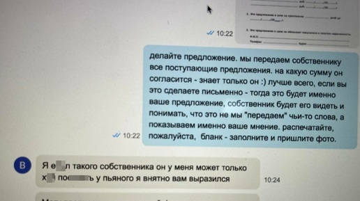Коллеги прислали скриншот переписки из сети. Там сплошная деревенская матерщина, но сама ситуация показательная в двух аспектах. Во-первых, вот такие мерзкие манеры общения - это самая банальная, но важная причина, почему между продавцом и покупателем желателен посредник. Хотя бы один, а лучше даже два, по одному с каждой стороны. Один раз контрагент нахамит - это ещё ладно, всякое бывает, но такое встречается периодически, и это точно никому не понравится. И дело не только в воспитании - недвижимость стоит очень дорого, для сторон такие сделки всегда существенны...