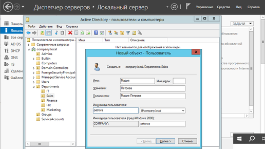 Создание и настройка пользователей в Active Directory