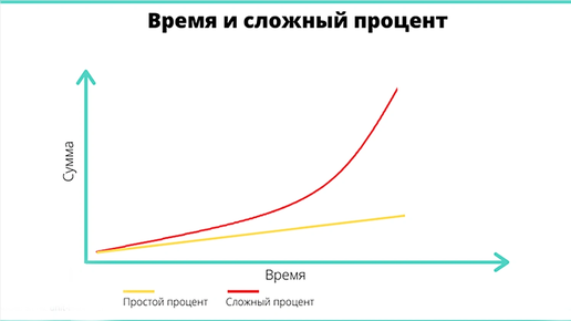 Сложный процент — это начисление процентов и на основную сумму, и на проценты за предыдущее время. Простой пример — банковский вклад с ежемесячной капитализацией процентов. Проценты за первый месяц начисляются на основную сумму вклада, во втором месяце проценты начисляются на сумму вклада и проценты за первый месяц и т. д. Чем выше доходность и чем дольше работает сложный процент, тем сильнее эффект. Если говорить простым языком то сложный процент это, то что накапливается при реинвестировании, то есть добавление дохода в оборот...