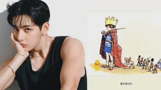 Этот сборник стихов британского писателя Алана Милна известен тем, что именно в нём впервые появился персонаж Винни-Пух, в стихотворении "Медвежонок." Книга объединяет стихи, в котором отражён детский взгляд и желание жить без ограничений. Почему Тэхён выбрал именно этот сборник стихов и эту иллюстрацию: 1. Ностальгия по детству: Тэхён, как и многие, мог испытывать ностальгию по беззаботным временам детства. Публикация иллюстрации – это способ поделиться этой ностальгией со своими поклонниками, напомнить им о важности сохранения внутреннего ребенка и умения радоваться простым вещам...