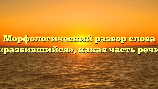 Морфологический разбор слова «разбившийся», какая часть речи  Морфологический разбор слова «разбившийся», какая часть речи  В русском языке существует множество слов, которые имеют сложную морфологическую структуру. К таким словам относится и слово «разбившийся». Чтобы понимать, какая часть речи относится это слово, проведем его морфологический разбор.  Первая часть слова — «разбивший», является причастием настоящего времени, страдательным залогом от глагола «разбить». Данное причастие образовано с помощью прибавления суффикса –ший к корню глагола...