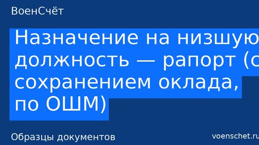 Назначение на низшую должность — рапорт (с сохранением оклада, по ОШМ)