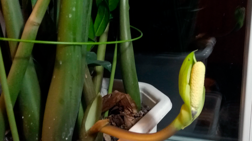 Здравствуйте, подписчики и читатели нашего канала. У нас зацвело долларовое дерево, настоящее название - замиокулькас, это тропическое растение и я хочу показать его, и рассказать о нём. Дерево у нас давно, не хочу придумывать сколько ему лет, и мы так и не вспомнили, кто нам его подарил. Кстати, как говорят приметы, счастье приносит только подаренное растение. И ещё: народное название цветка мужегон, или цветок безбрачия, и этот цветок, по поверьям, нельзя держать в доме незамужним девушкам. Как говорят, цветёт дерево очень редко, у нас первый раз зацвело...