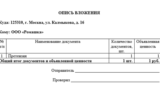 Опись вложения - документ, представляющий собой юридически значимое описание содержимого почтового отправления (письма, бандероли или посылки с объявленной ценностью). Этот документ активно используется юристами для подтверждения отправленных документов. Простые и регистрируемые отправления При направлении документов, например, при предъявлении претензии контрагенту, используют следующие почтовые отправления - простые и регистрируемые: заказные и ценные. Подтвердить факт отправки простого почтового отправления практически невозможно...