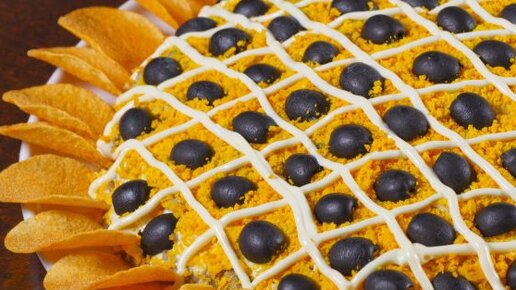 1. Классический салат «Подсолнух» Ингредиенты Приготовление Яйца отварите вкрутую за 10 минут, куриное филе — до готовности. Шампиньоны, курицу и маслины нарежьте небольшими кусочками. Белки отделите от желтков и натрите на крупной тёрке вместе с сыром. В сковороде разогрейте масло на среднем огне и примерно за 15 минут обжарьте грибы. Остудите. Выложите на плоскую тарелку слоями курицу, шампиньоны, сыр и белки. Каждый слой смазывайте майонезом или покрывайте сеточкой из него. Сверху посыпьте желтками и украсьте маслинами...