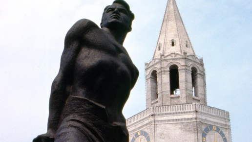 25 августа 1944 года в тюрьме Плётцензее в Берлине был казнён на гильотине поэт и участник подпольного Сопротивления Муса Джалиль (Залилов, 1906—1944), Герой Советского Союза (1956). Спасская башня Казанского Кремля и памятник Мусе Джалилю. Казань. 1975. Фото Томаса Хаммонда (1920—1993)