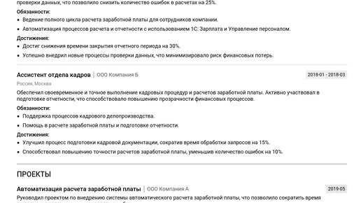 Пример резюме специалиста по расчету заработной платы — ваш быстрый путь к пониманию того, как создать документ, который заметит работодатель. Изучение готовых примеров — самый эффективный способ научиться представлять свой опыт и навыки для успешного трудоустройства. В этом разделе вы найдете не просто готовые примеры для разных уровней, а подробные пошаговые инструкции по каждому ключевому блоку резюме специалиста по расчету заработной платы: Мы учли типичные требования работодателей и дали советы,...