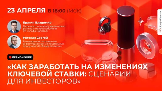 Очередное заседание совета директоров Банка России пройдет 25 апреля. Как подготовиться к возможным изменениям и использовать ситуацию в свою пользу? 📈 Будем разбираться на вебинаре «Как заработать на изменениях ключевой ставки: сценарии для инвесторов». 🚀 Эксперты рынка рассмотрят: • какое решение примет ЦБ 25 апреля; • как подготовить портфель к снижению ставки; • как не упустить возможности на рынке; • что делать, если ставка останется высокой...