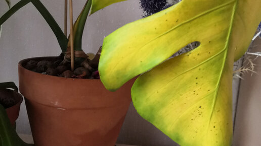 Часто бывает так, что цветок выглядит засохшим, а на самом деле он залит. Давайте разберёмся, почему так происходит и, главное, как отличить залив от пересушивания. Итак, возьмём как пример монстеру. Вы поливали её по мере просыхания верхней четверти грунта, но пару раз ленились проверить и слегка залили. Монстера отреагировала тем, что листья перестали быть блестящими, немного потеряли упругость, ведь некоторые корни подгнили от залива. Вы посмотрели на внешний вид растения и решили, что давно не поливали и монтера подсохла...