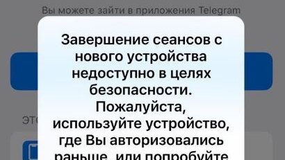 Выкидывает из Телеграм не могу завершить сеанс пишет Завершение сеансов с нового устройства недоступно