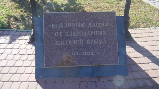 После возвращения Крыма к своим истокам, прошло уже пять с половиной лет. С исторической точки зрения это совсем мало, но за это время у нас появилось несколько замечательных памятников, с которыми я хочу вас познакомить. Вспоминая те события, на ум сразу приходит мысль о "зеленых человечках" и/или "вежливых людях". Жители Крыма очень благодарны этим людям. Ведь после их появления в Симферополе сразу исчезли киевские нацики, последыши Бандеры, прочая, чуждая крымчанам нечисть. "Вежливые люди" присутствовали незримо, но благодаря им, референдум в Крыму прошел без эксцессов...