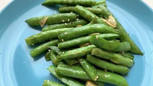 Сейчас сезон зеленого горошка. Уже формируются стручки или горошины. Я люблю из гороха делать гарнир. Еще добавлять в пасту. Сделать гарнир очень просто. Нужно обжарить горошек с чесноком на оливковом масле в течение 2-4 минут. Но сначала отрежьте лишнее от стручка. Нарежьте чеснок. Обжаривайте совсем недолго, нужно лишь чтобы появился аромат чеснока, а горох нагрелся и пропитался маслом Можно присыпать кунжутом Идеальные стручки совсем молодые с очень маленькими горошинами, их можно есть целиком...