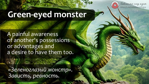 Зеленоглазый монстр – кто это? Фраза green-eyed monster означает ревность или зависть. Её происхождение связывают с двумя ключевыми источниками: Уильям Шекспир 📜 “Merchant of Venice” (1596): “And shuddering fear, and green-eyed jealousy!” («Сомнение, отчаянье, испуг и муки ревности зеленоглазой!»). 📜 “Othello” (1604), where Iago warns Othello, “O, beware, my lord, of jealousy; It is the green-eyed monster which doth mock the meat it feeds on.” (Яго предупреждает Отелло: «О, берегись ревности, мой господин! То - чудовище с зелёными глазами, что насмехается над мясом, им же съеденным...