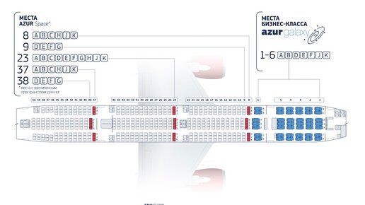 Боинг 777-300 - схема салона самолета от авиакомпании Azur air (Азур эйр)