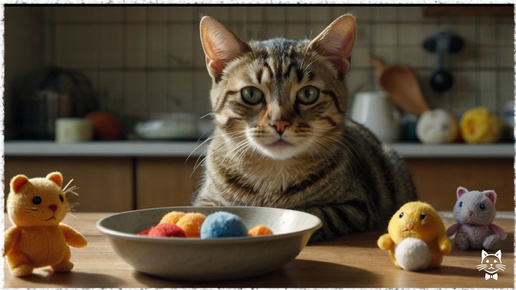Зоопсихолог Андрей Викторович Мурлыкин уже пятнадцать минут стоял на четвереньках, наблюдая за своей кошкой Мусей через увеличительное стекло. Соседи бы точно вызвали санитаров, увидев такую картину: солидный мужчина средних лет с научной степенью ползает по кухне за полосатой хвостатой особой весом три килограмма. — Муся, ну что ты делаешь? — шептал он, записывая что-то в блокнот. — Опять эта странная церемония... Кошка между тем выполняла свой утренний ритуал с серьёзностью шамана. Сначала она аккуратно принесла к миске с кормом розовую плюшевую мышку...