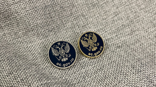 Красивый фрачный значок для государственной структуры. Небольшой, строги и лаконичный значок. В одном тираже мы изготовили золотистые и серебристые значки, что дало возможность заказчику хорошо сэкономить. Значки изготовлены в технологии травление, размер 20мм, 2D, эмаль, металл латунь и нейзильбер, крепление цанга-бабочка. Срок изготовления тиража составил всего 12 рабочих дней. Каждый значок упакован в индивидуальный пакетик, а готовый заказ мы бесплатно доставили заказчику в офис...