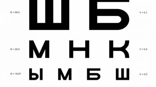 Таблица Сивцева - таблица, по которой проверяют остроту зрения. Названа по имени советского офтальмолога, который придумал её в 1925 году. 🔷Процедура по определению остроты зрения с помощью таблиц, называется визометрия. ▪️Таблица состоит из 7 букв русского алфавита расположенных в произвольном порядке на 12 строках. ▪️На первой строке мы видим самые большие буквы. Она соответствует 10 % зрения. ▪️Каждая следующая строка отличается от предыдущей на 0,1 шаг. ▪️10 строка говорит о 100 % зрении...