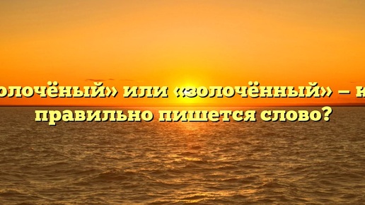 «Золочёный» или «золочённый» — как правильно пишется слово? Написание – «золочёный» или «золочённый» – определяется принадлежностью слова к определенной части речи и контекстом. Как пишется правильно: «золочёный» или «золочённый»? Безошибочно написано и первое, и второе слово. Какое правило применяется? Первая словоформа «золочёный» – прилагательное, образованное от глагола «золотить». Употребляется в значении: тот, который покрыт золотом, позолотой; позолоченный. Пишется с «н». «Золочённый» – страд...