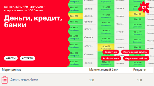 Деньги, кредит, банки (Синергия/МОИ/МТИ/МОСАП – вопросы, ответы, 100 баллов)