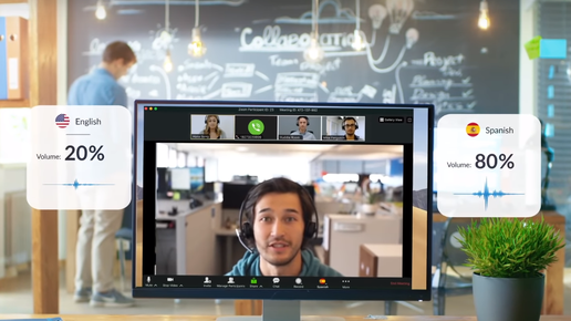 Zoom выложил видео про то, как работает обещанный синхронный перевод в конференциях и вебинарах. Переводчика нужно привести своего, а сервис обеспечивает дополнительный канал, по которому переводчик вещает громче, чем ваш основной собеседник...