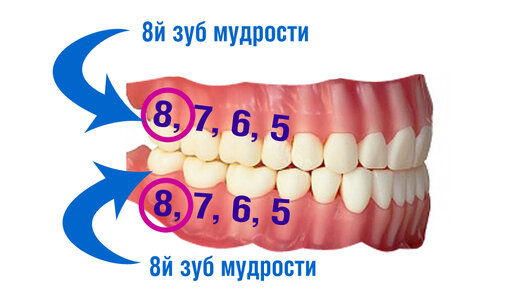 Зуб мудрости – это восьмой зуб по счёту, последний в зубном ряду. Так называется, потому что, как правило, прорезается в уже зрелом мудром возрасте 18-25ти лет. Что делать, если 8й зуб прорезался? В этой статье я расскажу о тактике ведения: наблюдение, лечение, удаление. В полости рта человека 4 зуба мудрости, по 1му на каждой стороне сверху и снизу. У кого-то такие зубы прорезаются, и их видно, у кого-то зубов мудрости вообще может не быть, а у кого-то они могут находиться внутри челюсти всю жизнь, без начала прорезывания...