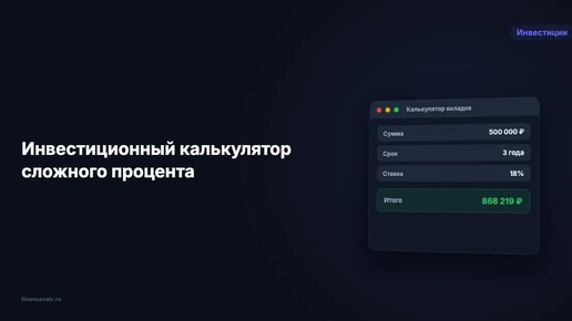 100 000 рублей при 10% годовых за 30 лет превращаются в 1 983 740 рублей. Без единого пополнения — деньги выросли почти в 20 раз. Причём 95% этого роста приходится на последние 15 лет. Проверьте свои цифры в калькуляторе сложного процента и посмотрите, как время меняет результат. Сколько принесёт вклад через 5 лет? А через 20? Без расчётов ответить точно не получится — сложный процент ведёт себя контринтуитивно. Калькулятор рассчитывает будущую стоимость вложений с учётом капитализации процентов...