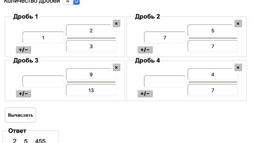Калькулятор приведения дробей к общему знаменателю