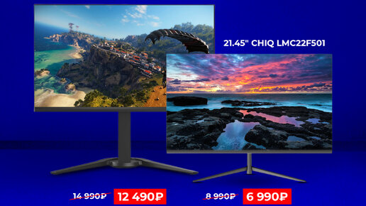 Обзор бюджетных мониторов CHiQ. Игровой монитор CHiQ LMD24F505-R 23.8". Монитор для работы и офиса CHiQ LMC22F501 21.45".