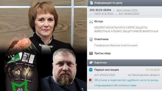 В Десятый арбитражный апелляционный суд через Арбитражный суд Московской области дело № А41-69443/22 Заявитель (Ответчик): Максим Анатольевич Парфирьев Истец: Межрегиональная общественная организация в сфере защиты животных «Альянс Защитников Животных», ОГРН 1167700074915 Адрес: 109341, город Москва, ул Перерва, д. 54, кв. 2. Госпошлина: 10 000 рублей. 20.04.2026 г. 1. Обжалуемый судебный акт В Арбитражном суде Московской области находится дело № А41-69443/22 в рамках которого рассматривалось заявление Парфирьева М...