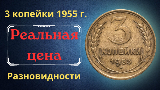 Цена монеты 3 копейки 1955 года. Разновидности. СССР.