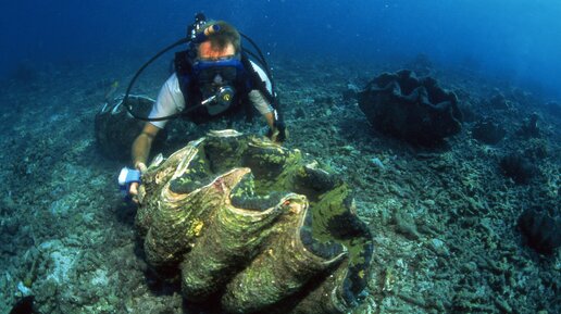 Гигантская тридакна: Моллюск с синей плотью весит 300 кг и производит жемчужины до 34 кг. Может ли эта махина зажать человека?