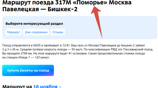 Поезд №317/318 сообщением Москва-Бишкек, который Туту зачем-то назвал... "Поморье"