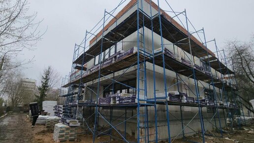 В детском саду №51 Серпухова строители утепляют фасад и завершают отделку