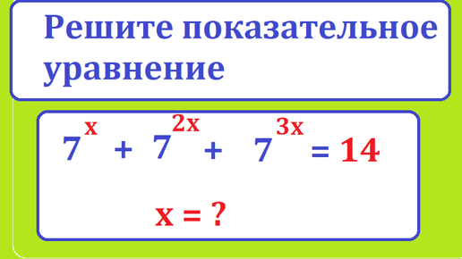 Решите непростое показательное уравнение: 7^x + 7^2x + 7^3x = 14