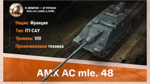 Разберемся! Сегодня ты узнаешь, какое оборудование поставить на AMX AC mle. 48 (французская ПТ-САУ 8 уровня). AMX AC mle. 48 – один из этапов прокачки на пути к Foch B. Уже начиная с 8 уровня начинает прослеживаться геймплей, который характерен для десятки. В первую очередь устанавливаем турбонагнетатель и улучшенную закалку. У нас местами неплохая броня и мы способны врываться на первой линии...