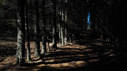Есть в моем путеводителе "Сто чудес Кузбасса на автомобиле" и природные достопримечательности, созданные человеком. Иногда у людей получается красиво, иногда масштабно, иногда страшно. Сегодня - комбо! Чудо Кузбасса № 21. "Аллея Сатаны" Здесь и красиво, и масштабно, и страшно. Это место находится на околице деревни в Новокузнецком районе. В середине прошлого века лесники посадили довольно большой массив пихты с расчетом на то, что часть деревьев не приживется. Но выжили почти все и образовали такую крону, через которую не может пробиться солнечный свет...
