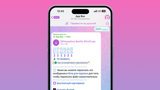 В данной статье мы покажем два способа по установке приложений и игр из канала The App Box и приложения App Box. Вы также можете купить личный сертификат разработчика, для того, чтобы установленные приложения работали без вылетов ровно год! 2. Нажимаем на кнопку "Установить" и после этого запускаем бота для установки с названием App Box. 3. Переходим по прямой ссылке с названием "Установить", и нажимаем здесь на кнопку "Установить" еще раз. 4. Нажимаем на кнопку "Download". 5. После чего нажимаем сначала "Открыть", а затем "Установить"...