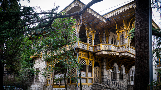 Ялта зимой идеальна для прогулок – не жарко и не особо многолюдно за пределами набережной. И главное – огромное количество архитектурных осколков той самой Российской империи. В разной степени сохранности. Неплохо выглядят, как правило здания, в которых обосновались госучреждения, музеи и театры. У них деньги есть, да и надзорные ведомства заставляют. Иногда (но не всегда) санатории. А вот дома, которые в свое время отдали под коммуналки и квартиры выглядят предельно плачевно под наслоениями пристроек, пучков проводов поверх стен, как в Азии, газовых труб и прочих усовершенствований...