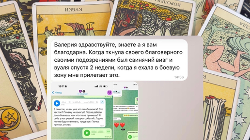 Недавно мне написала девушка с четкими подозрениями в том, что ее мужчина ей изменяет... Она хотела понять что будет дальше в отношениях и честен ли с ней партнер. Я сделала расклад и там четко показало измены с его стороны, их формат, а также его выгоду в отношениях с девушкой. Позже она прислала мне обратную связь, а также переписки с подтверждением его неверности... Если ты хочешь знать правду, то следуй инструкции ниже: 1.Возьми колоду карт, если у тебя ее нет, то самое время сделать заказ на ВБ (арт...